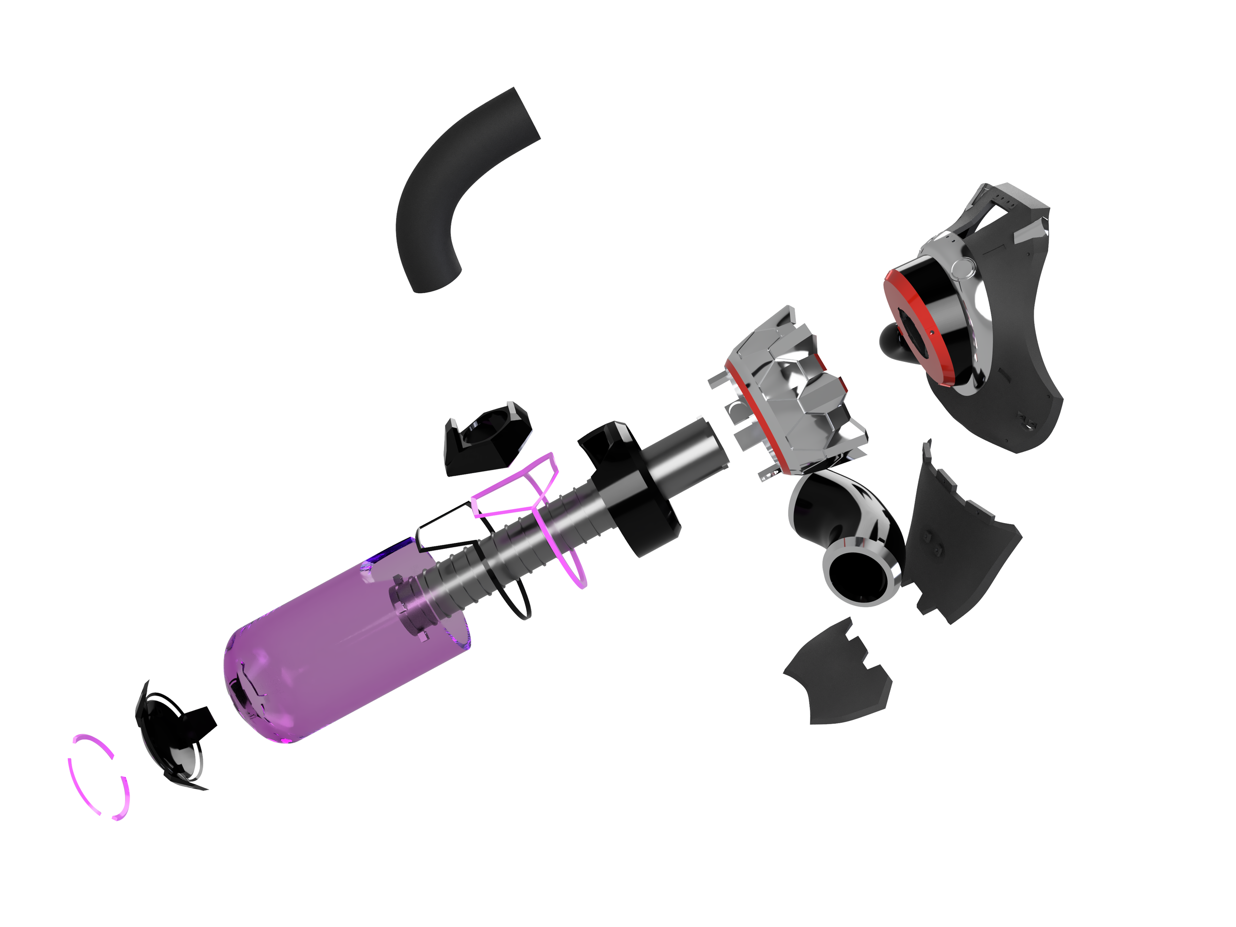 Miscellaneous pieces affix to the large vinyl tubes via a snug friction fit, with no direct attachment to the tubes themselves. The vinyl tubes were heat-shaped as much as they allowed, but still needed to be bent to fit. As such, they are under some tension when fit into these pieces. With this in mind, the tube fixtures that are affixed to the reactor itself were strongly reinforced at their connection to the reactor. The top cylinder is super-glued with a large surface area contact point, and the lower fixtures are attached with multiple screws. The front “valve” and ring fixtures have no load on them and sit on the tubes as decorative features.