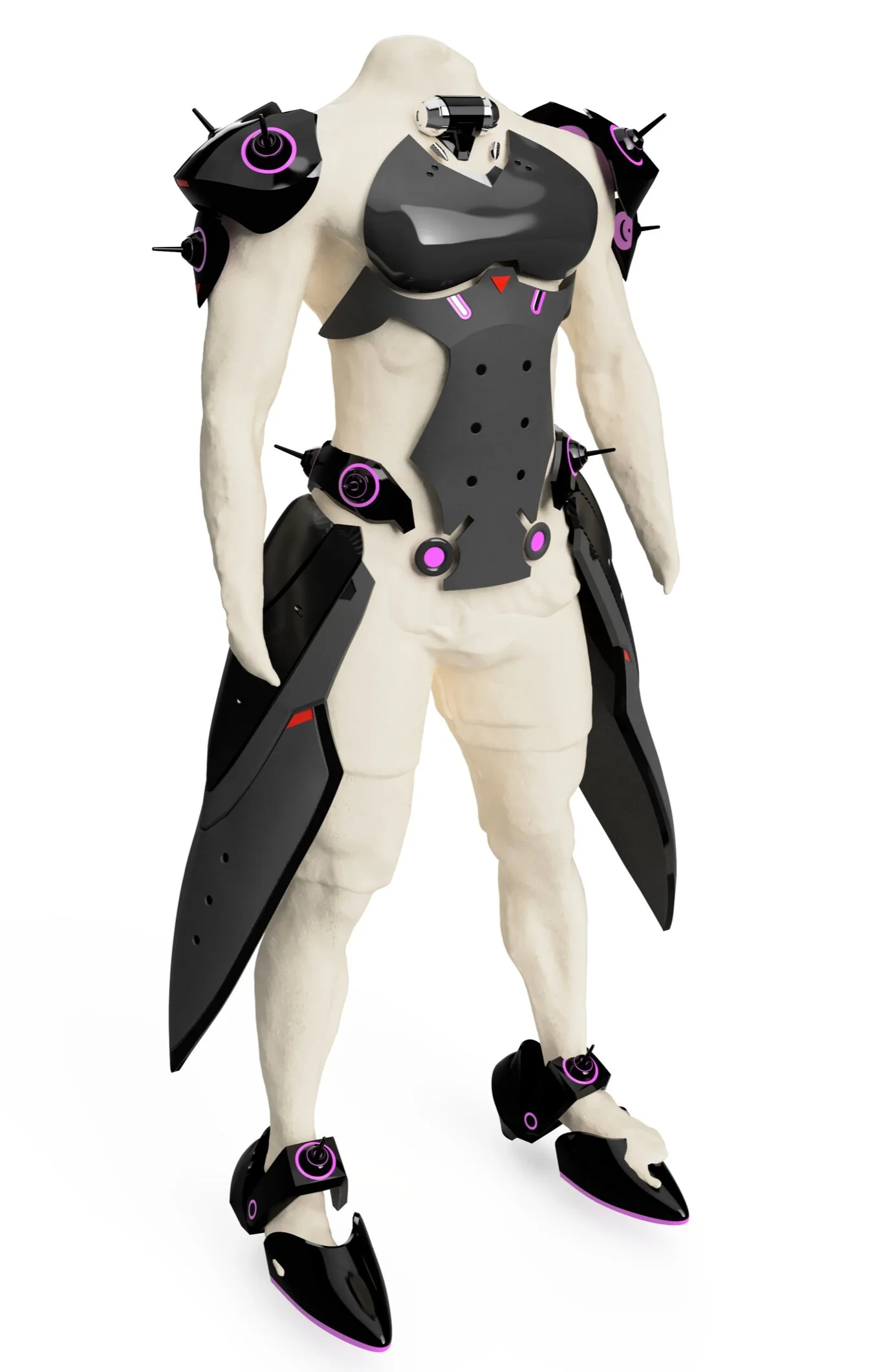 Moira’s body armor is a large set of individual pieces, many of which are contoured closely to the shape of the body. Specifically, these pieces are: