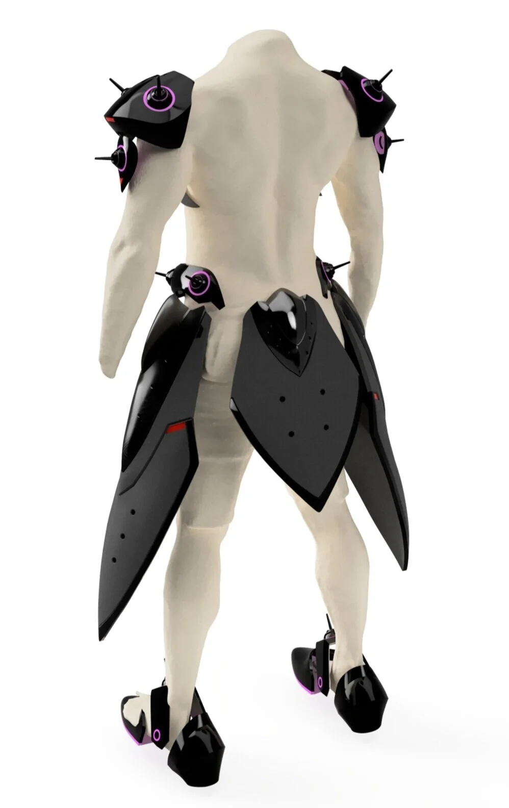 All other components were 3D printed in PLA plastic. Velcro was glued onto the shoulders and chest plate to match the velcro sewn into the undersuit. Velcro was also glued to the shoe plates. Magnets were installed on the hip pieces, tassets, brooch, and abdominal plate.