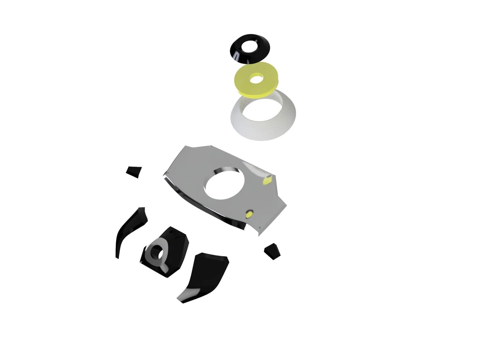 After 3D printing and fully finishing the surface to a 400 grit smoothness, they were molded with silicone rubber (Smooth-On Mold Start 20T). They were then resin cast with Smooth-On Smooth-Cast 325 with a small amount of So-Strong yellow and a very small amount of So-Strong white. The transparent yellow provides a color tint and the opaque white allows the piece to uniformly diffuse LED backlighting.